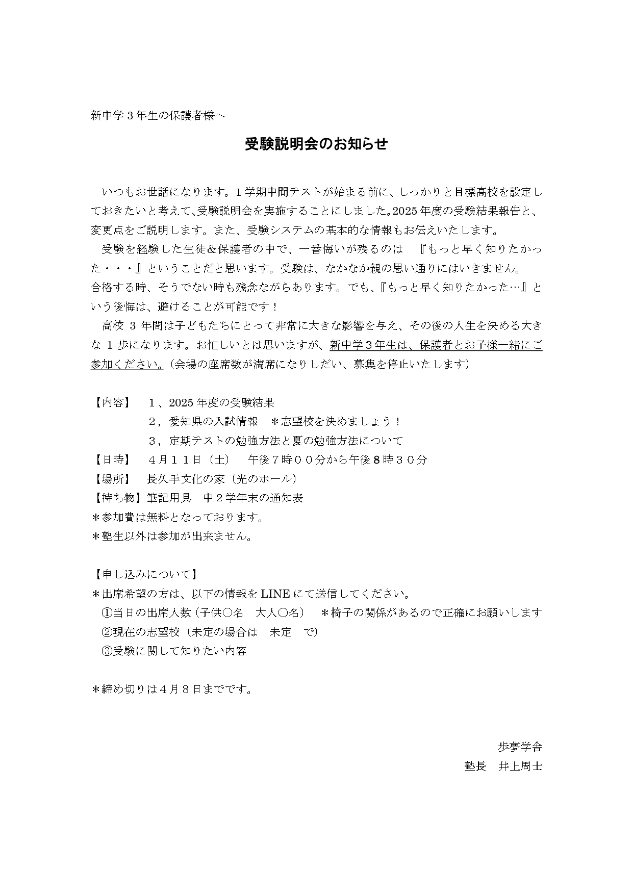 歩夢学舎と同じように、塾家たい夢もどうぞよろしくお願いいたします。